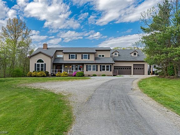 With over 4,300 square feet of flexible living space and valuable improvements throughout, this charming home has been meticulously maintained inside and out. The house is set back from the street on 5+ acres with a long, tree-lined driveway for incredible privacy in all seasons. A covered front porch overlooks the front yard and opens into the spacious main living area, where durable LVT flooring flows throughout the main level. The cozy living room features a cathedral ceiling and a double-sided wood-burning fireplace. The eat-in kitchen includes all appliances, an island, and high-quality Amish-built cabinetry designed with functionality and ease-of-use in mind. Sliding doors open out to the composite deck, hot tub, and pool, great for summer entertaining. An additional living suite with a separate entrance, kitchenette, and full bathroom completes the first floor, perfect for a guest suite or even a home business. Upstairs, there are four bedrooms and two full baths, including the luxurious primary suite. There are three incredible flex spaces on the second floor - a loft that is currently set up as an office, a bonus room with sliders to a back terrace, and a large 36x19 rec room with plumbing for a wet bar and extra electrical outlets for electronics or exercise equipment. The 2-story, 4-car garage was added in 2010 and is an auto enthusiast’s dream with a double-height garage door perfect for boat or large vehicle storage. Other recent improvements include new doors and windows in 2021, new HVAC in 2023, a new composite deck in 2016, and a new roof and gutters in 2011. Located on 5+ acres just outside of the Cuyahoga Valley National Park, this home provides exceptional privacy with easy access to area shopping, highways, and parks. It is just moments from Brandywine, Boston Heights, and Blossom, very close to route 8 and 271.