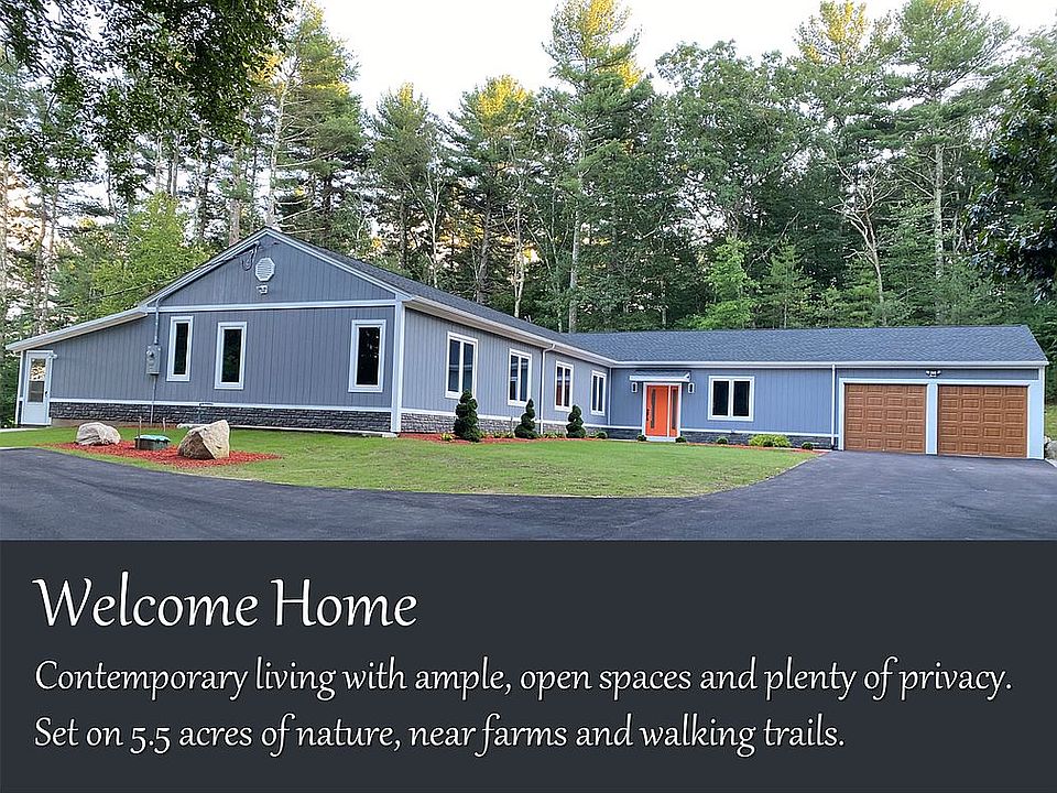 Gorgeous contemporary home with ample, open spaces and plenty of privacy. Set on 5.5 acres of nature, near farms and walking trails. Come enjoy the indoor space and the comfort of modern amenities and the outdoor living in the huge wrap-around screened porch.