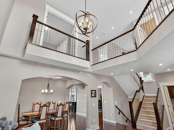 This stunning two-story residence offers over 3,800 sq. ft. of beautifully developed living space, perfectly designed for comfort and functionality. Backing onto Nose Creek - a beautiful tranquil natural setting, the east-facing backyard welcomes peaceful morning sunshine and provides a serene backdrop to everyday living. Step inside and be greeted by soaring ceilings and an abundance of natural light that enhances the elegant open layout. The main floor features a formal living and dining room—ideal for gatherings—along with a versatile flex room that can be used as a home office or study. The gourmet kitchen is a true showpiece, featuring granite countertops, a centre island, and stainless steel built-in appliances. The living room is warm and inviting, anchored by a cozy fireplace framed with beautiful built-in shelving and complemented by rich hardwood floors. Upstairs, the expansive primary suite offers a luxurious retreat with a spa-inspired ensuite, dual sinks, and a spacious walk-in closet. Two additional bedrooms and a large bonus room provide plenty of space for family and relaxation. The fully developed walkout basement is thoughtfully designed with two bedrooms, a full bathroom, and a complete kitchen — perfect for extended family or guests. This exceptional home offers easy access to major roads, nearby amenities, and scenic walking paths, making it an ideal blend of comfort, convenience, and natural beauty. ***VIRTUAL TOUR AVAILABLE***