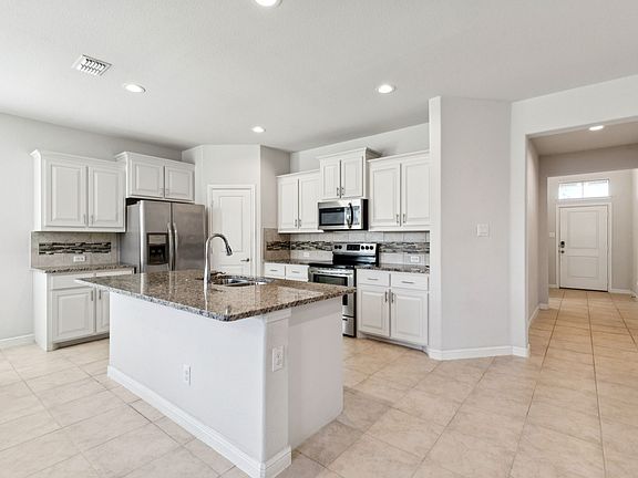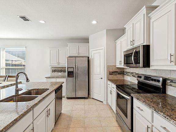 Open floor planCarpet in the bedroomsStainless steel appliancesTile flooringGranite countertopsNatural lightTile backsplash