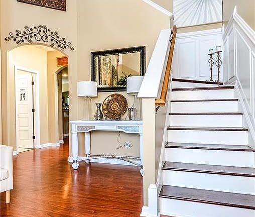 This stunning home is a must see. Open floor plan with natural lighting and tons of space! The home features beautiful wood floors, columns molding, chair rails in dining room and office area. Open kitchen with granite counter tops, island and stainless steel appliances. Four bedroom and 2.5 bath home has large bedrooms and the master bedroom has a sitting area with huge closet. Spacious back yard with privacy fence and fire pit is great for entertaining friends and family. Two car garage and storage shed for extra storage. This home is spectacular. Come see for yourself!!