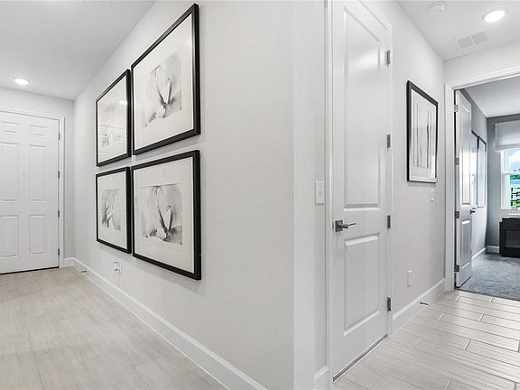 Under Construction. The thoughtfully designed Slate floor plan opens with two bedrooms flanking a full hall bath. Beyond the entry, you'll find an open layout with a dining nook, a great room with access to an inviting covered patio, and a kitchen with a center island, walk-in pantry, and abundant cabinetry. The primary suite is nearby, offering a generous walk-in closet and a private bath with a shower and a separate soaking tub. A laundry room and a fourth bedroom with its own private bath complete the home. This home offers Smart Thermostat, Curated 42" white cabinets with soft close, matte black finishes, kitchen backsplash, quartz in kitchen and all the bathrooms, 9 X 35 staggered wood look tile, 5 1/4 baseboards and video doorbell. * SAMPLE PHOTOS Actual homes as constructed may not contain the features and layouts depicted and may vary from image(s). **Take advantage of special financing + Flex Funds on quick move-in homes** Options may vary by community, so see your sales associate for details. These offers are available for select homes on a first-come, first-served basis.