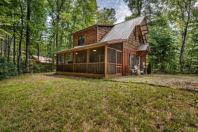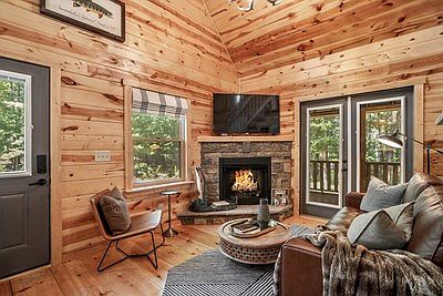 Charming Turnkey Designer Chalet This thoughtfully designed chalet offers the perfect blend of rustic charm and elevated style. You are immediately greeted by a storybook exterior featuring cedar shakes, board and batten siding, and a custom gray metal roof that sets it apart from the rest. The cabin was recently re-stained and sealed, enhancing its beauty and long-term durability. Set on just over three-quarters of an acre of flat, naturally landscaped land, the property offers exceptional privacy and is ideal for pets, play, or simply enjoying the outdoors. A built-in fire pit adds the perfect gathering spot for cozy evenings under the stars. Inside, every detail has been carefully curated by an interior designer. High-end furnishings, custom Roman shades, and upgraded light fixtures, upgraded appliances and upgraded hardware are all included. Gas log fireplace and natural, worn-in wide-plank pine floors bring warmth and character, creating a cozy yet refined feel throughout. The kitchen is both beautiful and functional, featuring custom navy cabinetry, honed granite countertops, and a playful backsplash that mirrors the look of scalloped fish scales. Unlike any other chalet model this size in the community, this home includes a full second bath in the loft, creating a rare two bedroom, two bathroom layout. It comfortably sleeps four with a king bedroom on the main floor and two twin beds in the loft. A spacious screened-in deck adds extra living space with a second dining area, perfect for relaxing or entertaining. A built-in dehumidifier ensures easy summer maintenance, making the home comfortable and low-maintenance year-round. Turnkey and fully furnished, this designer chalet is ready for immediate enjoyment as a private getaway, vacation home, or investment property.