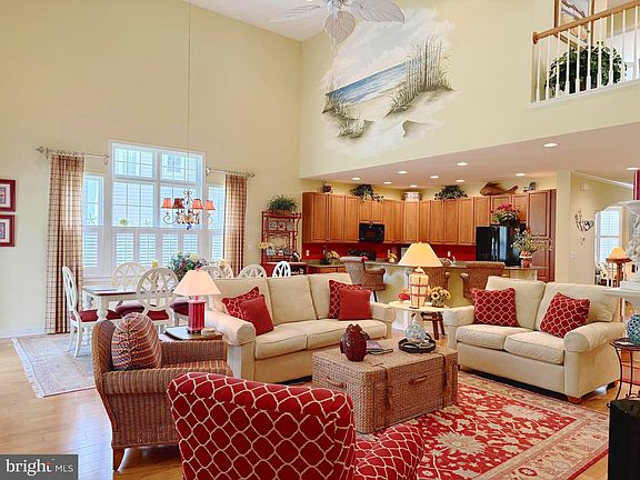 Coastal chic reaches new heights in this impeccable retreat—a masterclass in understated luxury and refined resort style living. Every detail, from the lush garden that frames the welcoming front porch to the sweeping golf course views, signals a home designed to impress. Inside, 2,800 square feet of carefully curated space unfold: wide plank hardwood floors, plantation shutters, and a gourmet kitchen outfitted with granite countertops, a gas range, and elegant wood cabinetry. The main floor’s open layout is made for effortless entertaining, with the kitchen, dining area, and great room flowing seamlessly together. Gather around the fireplace beneath a vaulted ceiling, sunlight streaming in through walls of windows. This level also features a cozy den, a full hall bath, a versatile bonus room for guests or a home office, a serene main suite with its own spa-like ensuite, and a laundry room tucked away for convenience. Upstairs, a private suite offers a peaceful escape, while two additional bedrooms are connected by a Jack & Jill bath—a perfect setup for family or guests. Thoughtful updates ensure comfort and ease: a new HVAC system and water heater (both 2023), an irrigation system to keep gardens thriving, dimmable lighting for the ideal atmosphere, and a permanent gas hookup for effortless outdoor grilling. The finished garage includes a second refrigerator, and the location provides direct access to the park and the beach shuttle stop. Outdoor living is elevated with composite decking on porches and decks, a rear paver patio and mature gardens—ideal for alfresco gatherings or quiet relaxation. Meticulously maintained by the original owner, this home is nestled in Bear Trap Dunes, an award-winning community brimming with amenities: indoor and outdoor pools, Har-Tru and hard surface tennis courts, a fitness center with whirlpool and saunas, multi-sport courts, basketball and volleyball, beach shuttle, HD cable TV, internet, and a tot-lot playground. The Bear Trap Dunes Golf Club offers public play and on-site dining. Please note, new owners pay an initial contribution of $1,400 at settlement.
