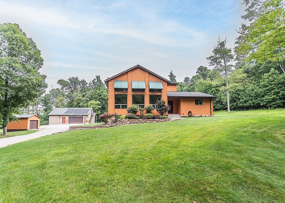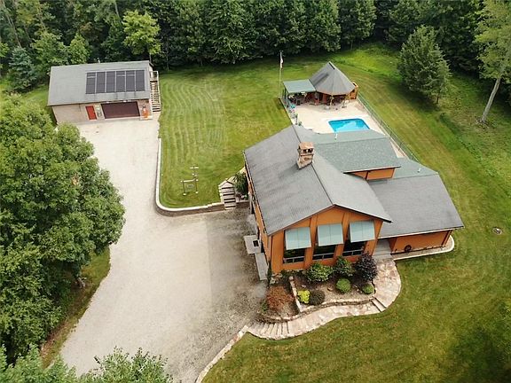 Truly One of a Kind! Stunning 2400 sq ft home on private tree-lined street, highly desirable Hopwood location. Private entrance, stone pathway & landscaped grounds invite you into front yard sitting across 3 ½ wooded acres. Warmly greeted by attractive wooden floors in open kitchen complete w/commercial Vulcan 6-burner stove w/griddle & custom range hood & bright & open floor plan connecting kitchen to living rm leading to backyard. 3 Bedroom, 2.5 bath plus unique flex basement w/adaptable rms, high ceilings, & rich natural light. Living rm complete w/22’ high cedar ceilings. Cozy wood-burning stone fireplace, or relax in 16x32 in-ground propane & solar-heated pool w/adjacent pool house incl. private shower & bath, covered by gazebo w/private dining area. Built & cared for with meticulous attention to detail. Wired 8 camera system with 24hr monitored fire & security system. Large 2-car garage & 12x12 cedar shed as well as detached 32x48 heated garage.