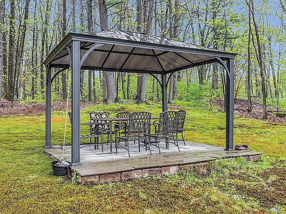 Just move in to this ranch home on 1.25 acres of land! Set up on a knoll - and off the road. Make your own trails for dogs, exercise etc. This property extends over 700' off the road. Super convenient location, close to highways and shopping. Bright white kitchen with light cabinetry, countertops and flooring. Refrigerator & range under 5 years. Bathroom with newer vanity, toilet - all white fixtures. Hardwood floors in other rooms. Major improvements include - New septic 2021, new electric panel 2024, vinyl siding 2023, roof 2022, windows approx. 2016, oil tank 2012, hot water tank 2014, forced hot water furnace 1996. Front deck for entertaining or sit out in your private back yard with firepit and gazebo area Quick close possible. Title V scheduled for next week.