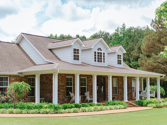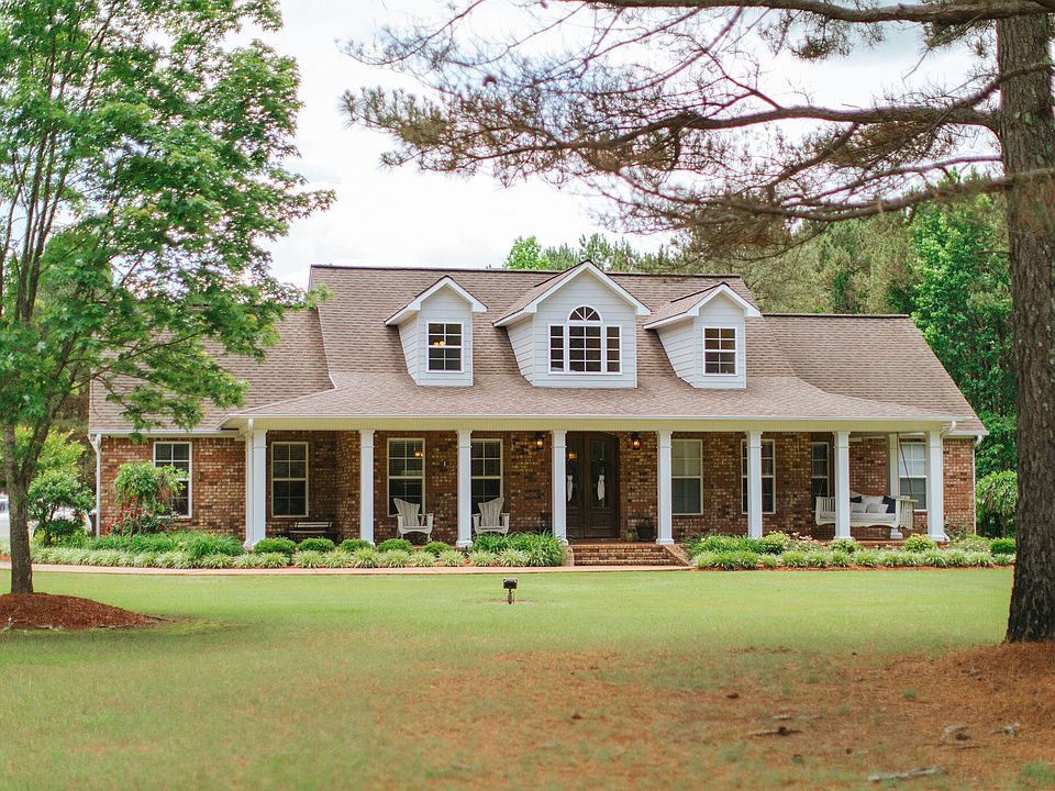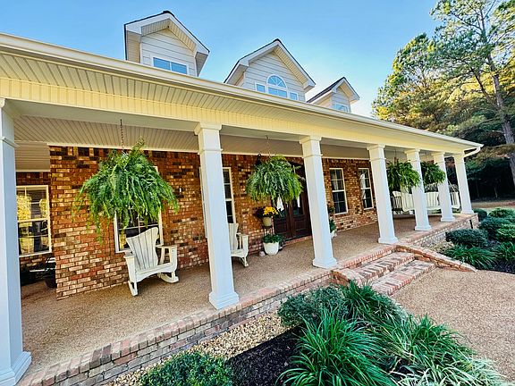 Tucked gracefully among five acres of manicured grounds, this remarkable five bedroom, three and a half-bath estate embodies timeless Southern elegance. Every detail of this custom-built home was designed with both integrity and beauty in mind, from its carefully engineered foundation with piers and backfilling for lasting stability, to the Hardie Board exterior, freshly repainted just four years ago. The curb appeal is unmatched, framed by lush, mature landscaping and nourished by dual Rain Bird underground sprinkler systems fed by two-inch water lines, ensuring every inch of the property remains vibrant and alive. Inside, the home welcomes you with double front doors that open to spacious rooms filled with natural light and thoughtful design. Graceful tray ceilings, custom built-ins, and warm wood tones create an atmosphere that's both refined and comfortable. The living area features a gas fireplace that can convert to wood-burning, offering a cozy focal point for quiet evenings or lively gatherings. A sunroom extends along the back of the home, perfect for enjoying morning coffee or afternoon light overlooking the pool. Surround sound ensures the perfect ambiance for every moment, while the SimpliSafe alarm system provides peace of mind.