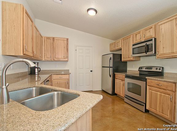 GREAT HOME IN POPULAR RIVERMONT IN A FOREST OF OAK TREES! WIDE OPEN FLOOR PLAN WITH STAINED CONCRETE, GRANITE COUNTER TOPS IN KITCHEN, DETACHED GARAGE, COMPLETELY FENCED! RIVERMONT OFFERS 3 PARKS INCLUDING NEIGHBORHOOD POOL, BIG COVERED PAVILION WITH RESTROOMS, TENNIS/BASKETBALL COURT, PLAYGROUND EQUIPT AND SOCCER GOALS AND A BEAUTIFUL PARK ON THE GUADALUPE RIVER FOR KAYAKING, SWIMMING AND FISHING! COME MAKE THHIS BEAUTIFUL HOME YOURS TODAY! PRICED TO SELL!