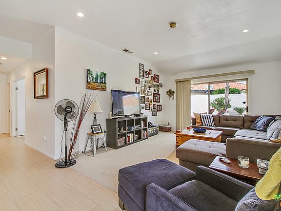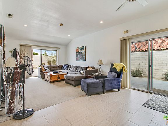 Remodeled 2 bedroom, 2 bathroom home in Palm Springs. This home boasts several great things! Fee Simple land (land you own), private pool and spa, high ceilings, and updating. There are high ceilings in the living room and the property is nice and bright inside due to glass sliders at the dining area as well as the living room. The master suite has 2 closets, and has dual vanities in the private bathroom. There are also sliders to the backyard directly from the master suite. The backyard is completely enclosed and very private. Buyer and buyer's agent to verify all information.