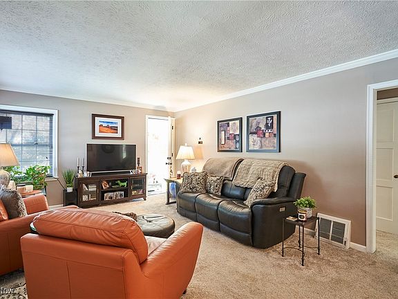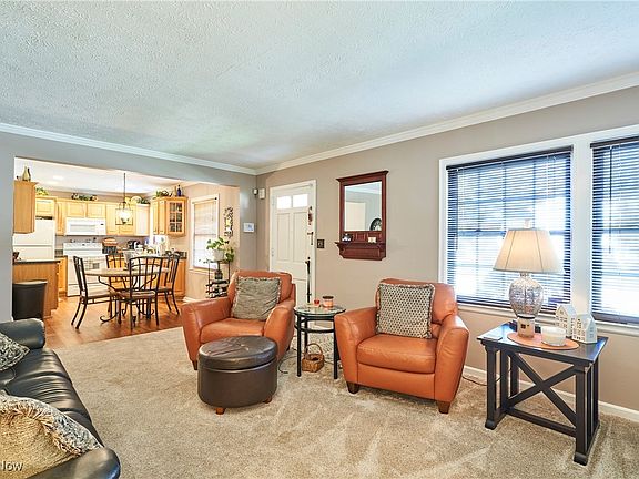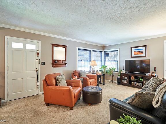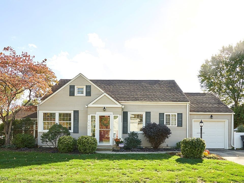 Meticulous vinyl sided cape cod in West Akron. This is a 3 bedroom 2.5 bathroom home with many updates. The Living Room has newer paint and carpet. The kitchen has been updated with maple cabinets, and newer LVT flooring. Both the cabinets and and the room have crown molding. On the first floor are 2 bedrooms and updated full bath. The bath has newer vanity and the tub surround was tiled in 2020. Off the living room is a sun porch with carpet and a slider leading to a private patio with a vinyl fence. Upstairs is the master ensuite. The floors are pine wood and the room has recessed lighting. The Master bedroom has a double closet, plus dormer storage. The master bedroom has a tiled shower and tiled floors. Also on the second floor is an extremely large walk in space for storage, over the garage. The lower is in great shape and has a basic half bath and is ready to be finished. Updates include roof approx 2021 ,Central air approx 2012, 100 amp service, some vinyl windows, concrete drive in approx 2008, plus paint, carpet, and LVT flooring. This home has been lived in very softly and is wonderful to show.