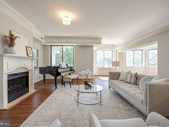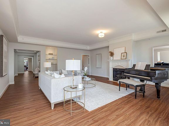 Finally.....a very large beautiful unit is available in The Palladium, and it has a private elevator!! Located in the heart of McLean, The Palladium offers an ideal and central location that is only a short walk to many of the restaurants, shops and markets that McLean has to offer. Freshly painted and with a light-filled layout plus multiple outdoor spaces, this floor plan is great for both entertaining and day-to-day living. There is a formal entryway for guests leading to the large living room with a fireplace, access to a balcony and connecting to the dining room. The updated kitchen features white cabinetry, quartz countertops, a center island, ample storage and a breakfast nook. A hallway leads to a coat closet, a powder room and the private elevator with direct unit and parking access. The primary bedroom suite offers three closets, including a large walk-in closet, and an en suite bath with dual sinks, a jetted tub, a separate shower and a private water closet. There is an additional bedroom suite, a laundry closet and a den that provides access to the private terrace with a built-in planter. A large communal courtyard with seating and a barbecue is accessed directly from the patio. Additional Palladium amenities include an elaborate fitness center, a library and a staffed front desk. Two parking spaces and two storage spaces convey.
