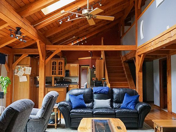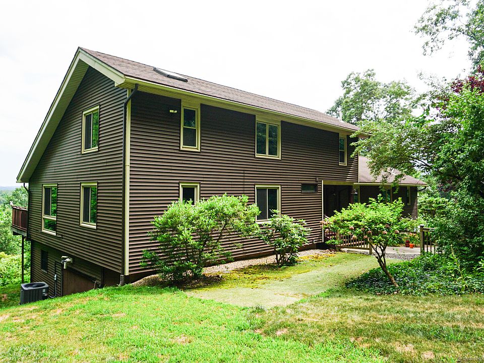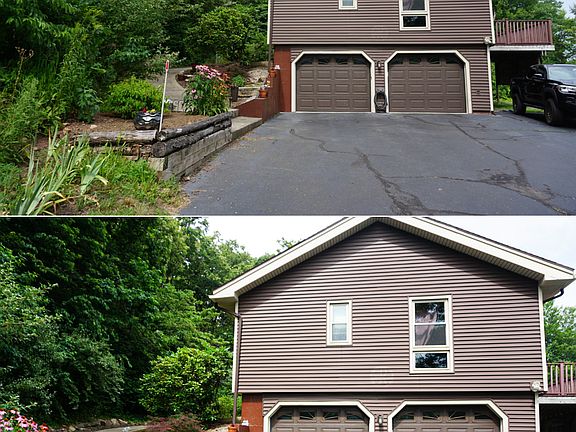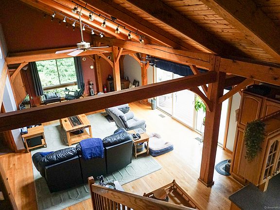 This rare, high quality, post and beam built home has all of the peace & privacy without the sacrifice of convenience. Beautiful high ceilings throughout the main level with an open floor plan from the kitchen to the large living room, including a giant deck for all the summer cookouts. The dining area has its own open feel, great for entertaining. The primary bedroom, with views from a private deck, is definitely the most elite feature. It includes large bath with tub & separate shower that leads right into the dreamiest walk-in closet. If that wasn't enough, there is a second primary bedroom on the upper level with its own bathroom and walk-in closet. There are also 3 other bedrooms, 1 upper level and 2 main level next to another full bath. The walk-out basement has a large finished mixed-use room, laundry room with pantry style shelves, a huge storage room with a workspace and newly installed led lighting runs throughout. The 4-car garage enters the house thru the basement and includes a newly installed sink with a waterproof wall behind it. There is also a brand new stone fire pit in the yard with a viewing deck, great for summer parties! Additionally, a new electric panel, new washer/dryer and new stove in the kitchen. Located approximately where Wallingford and North Haven meet Hamden, with easy access to amenities and highways. You don't wanna miss this one!