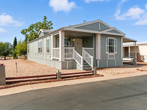 Bright, Open, and Move-In Ready on a RENTED LOT! This clean and well-cared-for home sits on a spacious corner rented lot and stands out in its price range. Large windows, vaulted ceilings, and an open layout give it a light, airy feel throughout. It's easy to convert into a 3-bedroom if desired. Recent updates add to the appeal, along with a large 2-car carport and a custom-built detached storage shed. Located in a quiet, friendly neighborhood with combined HOA fees and lot rent totaling $600 per month, this home offers convenience without sacrificing comfort. Quick access to shops, restaurants, and everyday necessities makes daily living easy. A rare find at this price—comfortable, functional, and full of natural light. Buyer/buyer's agent to verify all information.