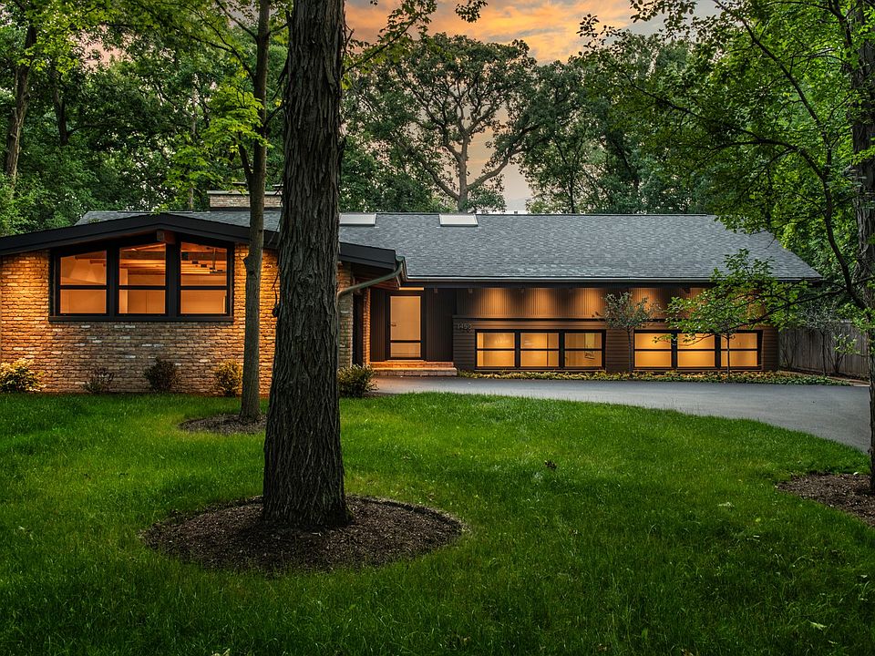Breathtaking mid-century modern home, a stunning gem that has undergone a complete transformation over the past two years. Situated on just under 3/4 of an acre, this residence offers an oasis of tranquility and seclusion with its mature trees and ultimate privacy on a quiet cul-de-sac, a true rarity just minutes away from downtown Deerfield. Upon entering this remarkable property, you'll be captivated by its unique design features. Walls of glass stretch across the home, allowing natural light to flood every corner and providing picturesque views of the surrounding nature. Vaulted ceilings and multiple skylights add to the sense of openness and connection with the outdoors, creating an environment that harmoniously blends the interior and exterior spaces. The interior is an embodiment of spaciousness and sophistication, redefining the concept of an open floor plan. The expansive living areas flow seamlessly, allowing for unrestricted movement and an unobstructed sightline throughout the home. It's an entertainer's dream, as friends and family can gather comfortably and effortlessly, fostering a warm and inviting atmosphere. The beauty of this residence lies in its simplicity and elegance, evoking a sense of awe with its tasteful design elements. The heart of the home, the kitchen, is a masterpiece on its own. Adorned with high-end matt black hidden European cabinets, complemented by a luxurious 4" thick walnut cutting board, this culinary space stands as both a functional and aesthetic triumph. Equipped with top-of-the-line appliances, it's a haven for aspiring chefs and gastronomes alike. With 4 bedrooms and 3 full bathrooms featuring Italian porcelain tiles and smart toilets, modern convenience meets luxurious comfort. The interior boasts real hardwood floors throughout, exuding a sense of timeless charm and durability. These elegant floors contribute to the home's warm and inviting ambiance while seamlessly tying together the various living spaces. Practicality meets elegance with two laundry rooms, custom closets throughout, and a cozy fireplace adding warmth to the atmosphere. Mudroom with a Chicago common brick floor, and an IPE wood deck contribute to the home's versatility and appeal. Step outside to the pergola with a retractable louver roof and screens, providing protection from rainwater and pesky mosquitos, making outdoor relaxation a breeze. As you explore this property, you'll find yourself surrounded by lush nature, embracing the senses, and enhancing the experience of living in this remarkable mid-century modern retreat. The harmony between architecture, landscape, and design is an absolute delight for those who appreciate the essence of a well-curated home. Remarkable 2-car heated garage with vaulted wood ceilings and a Chicago common brick floor. It features two electric charging points powered by a 400 Amp service and all-new underground electrical lines. A perfect blend of craftsmanship and modernity for car enthusiasts and those who appreciate fine details. In summary, this spacious mid-century modern home, with its elegant transformation, offers an unrivaled living experience. With its idyllic location on one of Deerfield's most coveted streets, this residence is a true sanctuary, where simplicity, beauty, and functionality merge to create an extraordinary living environment that will surely overwhelm and enchant all who have the privilege of stepping through its doors.