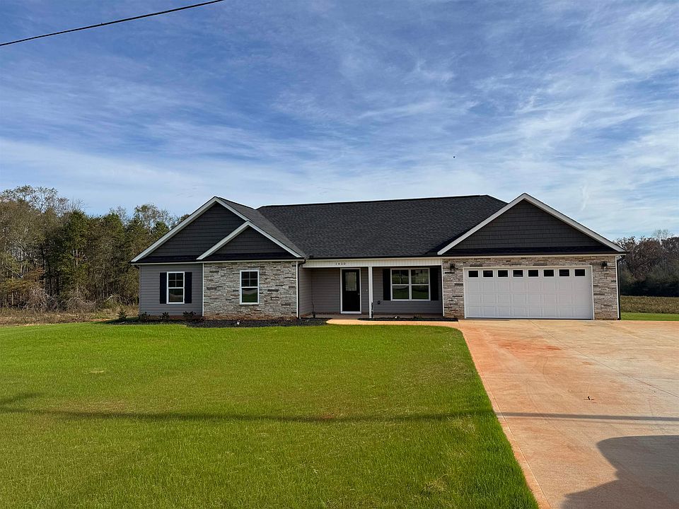 This beautiful new construction 3-bedroom, 2-bath home sits on .61 acres in the quiet Grassy Pond Community. Inside, you'll find crown molding and vaulted ceilings that give the living space an open, airy feel. The kitchen features granite countertops and stainless steel appliances, offering a modern touch. Enjoy the outdoors on the covered rear patio, and take advantage of the 2-car garage for extra parking and storage. With its peaceful location and comfortable layout, this home is a great option for those looking for space and privacy.