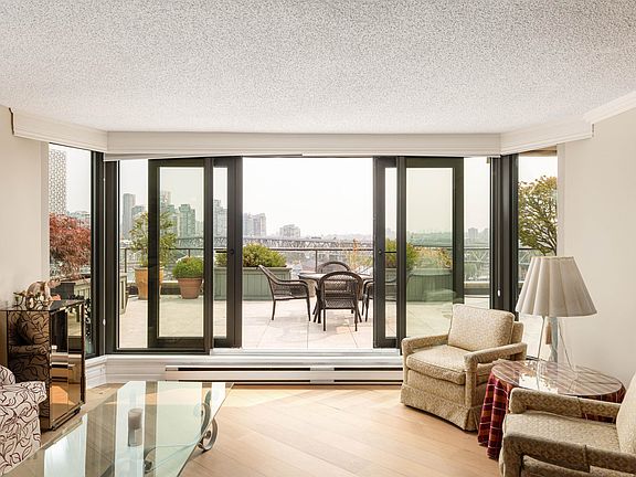 Welcome to Harbour Cove — a once-in-a-lifetime opportunity, on the market for the first time in over 30 years! This rarely available FREEHOLD waterfront home in a resort-style community boasts a 95 walk score and world-class amenities: private gardens, pool, hot tub, sauna, steam room, racquet courts, indoor driving range, workshop, and concierge. Revel in breathtaking, unobstructed views of downtown, Burrard Bridge, and False Creek from your expansive 680+ sqft terrace. The full-floor primary bedroom offers ultimate luxury and privacy. With 2 beds, 2 baths, 2 parking, 2 storage units, and abundant storage throughout, this spacious residence is ideal for entertaining and ready for your personal touch. Don't miss this rare chance to create your dream home in an unbeatable location!