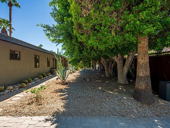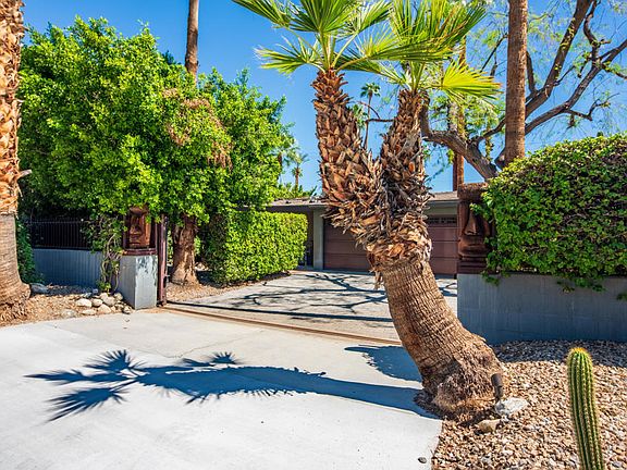 Tucked behind private gates and lush greenery in Tahquitz River Estates, this beautifully maintained 3-bedroom, 3-bathroom home offers nearly 2,000 square feet of seamless indoor/outdoor living. Sunlight fills the open floor plan, which features spacious living and dining areas, a well-equipped kitchen, and thoughtful updates that blend classic Palm Springs charm with modern finishes. Each bedroom is paired with a nearby bathroom, providing a private and practical layout for residents and guests. Step outside to your backyard oasis, where a large pool and spa create a resort-like retreat, surrounded by mature landscaping, multiple seating areas, and clear views of Mount San Jacinto. Designed for both relaxation and entertaining, the space combines serenity with private seclusion. Sitting on fee land (you own it) with no HOA, this home places you just minutes from the vibrant heart of Palm Springs, with its renowned restaurants, boutique shops, galleries, and entertainment at your doorstep. Ideal as a full-time residence, weekend getaway, or high-demand vacation rental. (As of September 18, 2025, Tahquitz River Estates is well below the 20% vacation rental cap, further enhancing its appeal.) Experience the ultimate Palm Springs lifestyle, combining comfort, style, and unmatched views in this private desert retreat.