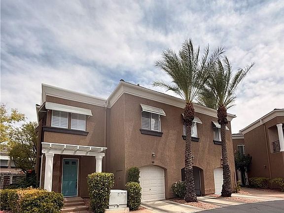 Amazing condominium in gated upscale neighborhood in Summerlin on the private TPC Summerlin Golf Course. 1607 square feet, 2 bed, 2 bath w/2 car garage, one attached and one detached garage. Kitchen w/granite countertops, Travertine marble flooring, white cabinets, SS appliances to include built in oven, cooktop, dishwasher, microwave & refrigerator. Travertine marble flooring throughout w/Luxury vinyl plank flooring in bedrooms & plantation shutters throughout . Primary Bed w/Large walk in Closet, surround sound speakers, granite counters w/dual sinks and Updated walk in Shower with tile surround. Secondary bedroom & bathroom with granite and tub/shower combo. Spacious Family Room with Balcony, surround sound speakers, Gas Fireplace, ceiling fan & light. Full Laundry with Washer and Dryer and cabinets on first floor. Community Pool and Spa. Close to Summerlin Parkway. Convenient to shops, library and parks. Garage, entry and laundry on first floor, everything else on second floor. $2350 base rent + $50 sewer/trash = $2400 periodic rent.