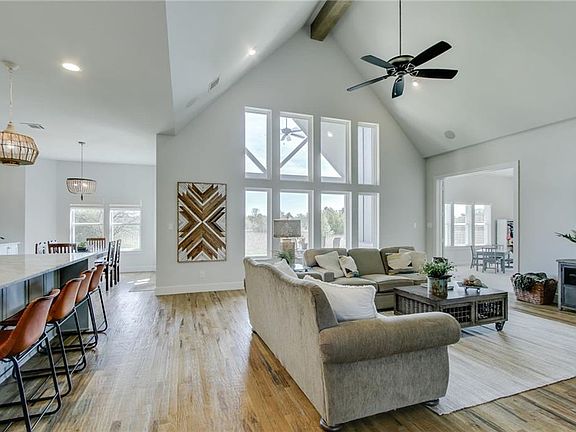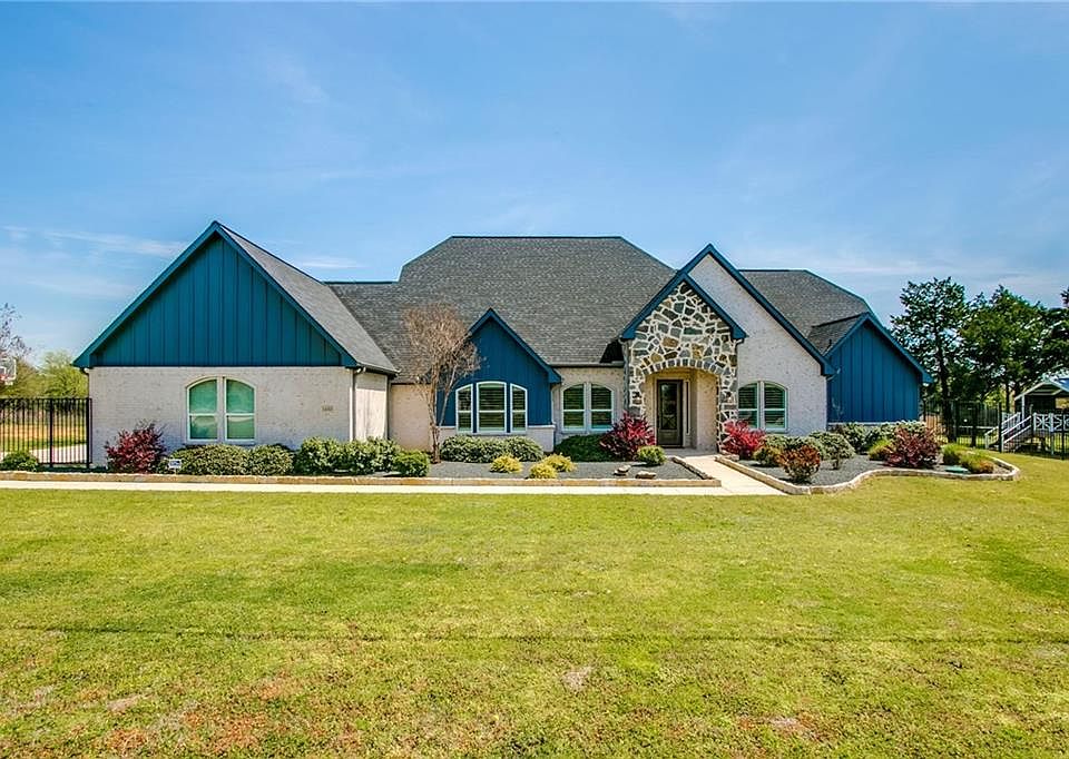 Beautiful, light and airy custom built 4BR, 3.5BA on 1.21 acre in serene setting near Grapevine Lake*Built in 2014, it features open flr plan w cathedral ceilings and soaring rock fp in living room*Study w 8' glass French doors and brick accent wall*Gourmet kitchen includes dbl ovens, 6 gas burner cktp and beautiful solid quartz counters*Large island w concrete apron sink is perfect for family or entertaining*64in upper cabinets and spacious walk in pantry*Second living great for game or playroom*Secluded master and spa like bath w freestanding soaking tub, separate vanities w marble countertops*Covered patio off dining area*Brick and flagstone fire pit*Gated drive to 3 car garage*Don't miss this amazing home!