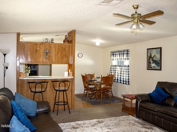 Move in Ready! The pride of home ownership beams in this 2 bedroom, 2 bathroom home conveniently located on the westside of Flagstaff. Easy access to the freeway, shopping, trails, and NAU. Enjoy the open living, dining, and kitchen areas that separate the two generous-sized bedrooms and full bathrooms. Newer roof, windows, bathroom fixtures, water heater, furnace, and paint. Lot lease is 831.50 a month. Call for your private showing and to hear about financing available for approved buyers.