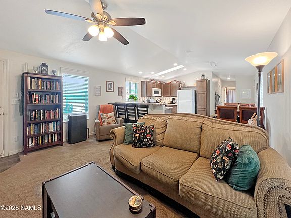 Cavco home built in 2017 - 3 bedroom/2 bathroom split floorplan gives you everything you need in an affordable home in Flagstaff! Great room has open kitchen with breakfast bar separating kitchen from living room. Primary bedroom has bathroom and walk in closet, while other 2 bedrooms and bathroom are on the opposite side of the house. This community has a playground, guest parking, and lot rent includes water/sewer/trash and road maintenance. Near NAU, Downtown, and easy access to shopping, dining, and hiking/biking trails. Buyers must apply and be approved by Westglen Mobile Home Park before submitting an offer. Lot rent 831.50.