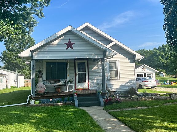 Small town living: Daleville school district Home offers wonderful front porch to listen to the sound of the koa pond, enjoy the back deck overlooking extra large yard. Home sits on 2 lots. Home overs newer roof (22), GFA (23), shower (23), newer flooring, vinyl replacement windows, vinyl siding. Crown molding in living room and dining room. Per seller hardwood flooring under the laminate in living room and dining room. Kitchen has slip lap wall. Mud room is plumbed for washer/dryer. Currently in the basement. 1 car detached garage.