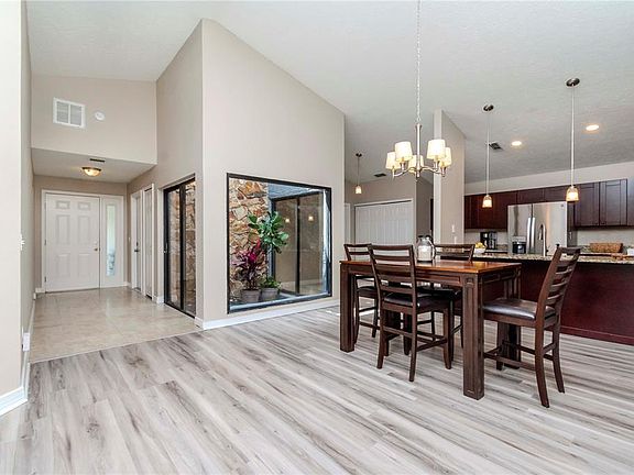 Step into tranquility in this beautifully designed home located in the heart of Carrollwood. Nestled on a quiet street, this home offers the perfect balance of serenity and convenience. Enjoy easy access to the Selmon Expressway, highways, and just minutes from all the dining, shopping, and entertainment in Carrollwood! The open floor plan with vaulted ceilings is bathed in natural light, creating a bright and airy atmosphere throughout. A unique atrium adds a special touch, offering endless possibilities—whether you envision growing an herb garden, displaying vibrant flowers, or adding a meditative fountain to enjoy while cooking. This home effortlessly blends comfort with beauty, making it the perfect retreat. The kitchen features rich cabinetry, granite countertops, and a breakfast counter ideal for casual meals. A cozy breakfast area and a convenient utility closet are also located just off the kitchen. The thoughtfully designed split floor plan offers privacy, with the master suite showcasing a generously sized walk-in closet and a master bath complete with a separate shower and tub. Sliding glass doors provide access to the fenced and screened-in patio, where you’ll find a freshly painted and resurfaced pool and spa. The family and living room combo include a fireplace, creating a cozy ambiance as you look out to your private pool oasis. On the opposite side of the home, two generously sized extra bedrooms share a full bathroom, offering comfort and privacy. The split floor plan maximizes space, providing an ideal balance of openness and seclusion. The 2-car garage completes this charming home, situated on a corner lot at the end of a quiet cul-de-sac street. Plus, enjoy peace of mind living in this lovely home, located in NO FLOOD ZONE that sustained NO DAMAGE during the last storms plus seller is willing to provide a one year home warranty with an accepted contract. This home offers the perfect blend of tranquility, convenience, and beauty—don't miss the chance to make it yours!