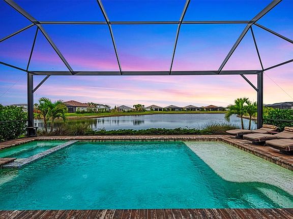 Under contract-accepting backup offers. Welcome to this stunning home in Talon Preserve on Palmer Ranch, a highly sought-after maintenance-free, gated community offering resort-style living. This spacious Mystique floor plan features 3 bedrooms, 3 full bathrooms, and a dedicated office. The gourmet kitchen showcases built-in appliances, quartz countertops, soft-close cabinetry, and natural gas. The open-concept design flows seamlessly into the great room and out to the lanai through zero-corner sliders, where a heated pool and spa overlook the lake. Additional highlights of the home include an oversized lot with added privacy on the side of the home, A third ensuite bathroom, which is a rare feature for this floor plan, and natural gas throughout the home. Lanai has also been upgraded with an extension that adds more than 180 sqft. Talon Preserve is an amenity rich community with a resort-style pool, poolside restaurant, tennis, pickleball, a fitness center, clubhouse, dog parks, and direct access to the Legacy Bike Trail. Best of all, there are no CDD fees. Conveniently located, the community is 6 miles to Nokomis Beach, 8 miles to Downtown Venice, 11 miles Siesta Key, and 16 miles to Downtown Sarasota.