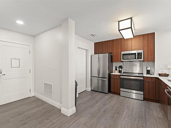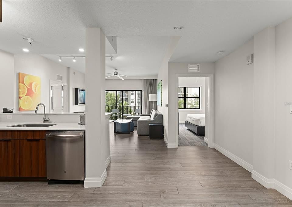 Sleek countertopsIn-unit laundryModern kitchenNatural lightExtended screened balconyStainless steel appliances
