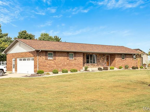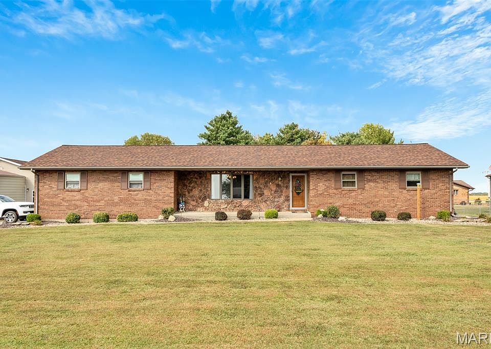 This beautiful 3 bdrm/2.5 bath all brick ranch home offers a comfortable layout with updates throughout. Located just a few minutes out of Breese this home sits on almost an acre with a fenced yard, detached shed & large carport. Entertaining is a dream with the gorgeous 27x22 covered patio off the dining room, complete with a wood-burning fireplace for year round enjoyment. The patio overlooks the above ground 27' pool and a fully fenced backyard, creating the ultimate space for gatherings. The owners have maintained the home well and have updated the bathrooms with new flooring & countertops. The bedrooms and main floor laundry feature new flooring as well. All kitchen appliances stay. The partially finished basement expands your living space with a cozy family room and a bonus room with a walk in closet - perfect for a home office, guest space, or hobby room.. The 30x40 detached insulated shed is perfect for additional parking, storage of all your toys and offers plenty of workshop space, the 2 electric heaters stay! Need more covered parking...the recently added 28"x38" carport has you covered. Some recent updates include, new roof on home and shed (2022), sump pump with guard dog backup, hot water heater (2024), garage door opener on shed (2025), pool pump/filter (2022), robot pool vacuum (2025), fencing (2022). Call your agent today to view this beautiful home!