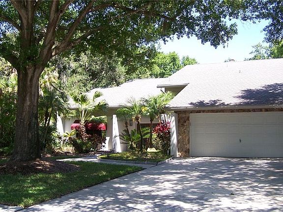 PHASE I CARROLLWOOD VILLAGE executive home is located in The Cloister on the seventh green of the Meadows Course of the Carrollwood Village Country Club. This is a wonderful home for entertaining. The beautiful front doors with leaded glass open into the spacious foyer. The living room has a soaring, vaulted ceiling. The brick paver patio and large in ground pool with a two-story screened cage can be accessed from the dining room, kitchen, and family room. The kitchen has recently been updated with granite countertops and top-end stainless steel appliances. The family room has a stone fireplace. There is a bedroom downstairs as well as a full bath and laundry room. Upstairs the master bedroom has a fireplace and French doors that open to a small balcony with a spiral staircase. A bonus room off the master bath is currently being used as an office but could also be used as a nursery, play room, craft room or man cave. The master bedroom has a large walk-in closet with custom California Closet organizers as do the other bedroom closets, the kitchen closet pantry and the garage. There are also two additional bedrooms and a full bath upstairs. A fenced area on one side of the house is perfect for pets. The home is near the new Carrollwood Village Park, the Carrollwood Cultural Center, Citrus Park Mall, I-275, and is about 20 minutes from Tampa International Airport.