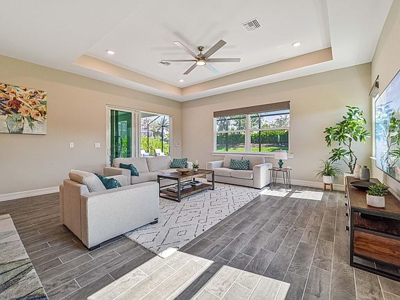 THIS IS SEASONAL RENTAL. Low-season daily rates: $225+ High-season daily rates: $275+ The properly is only available on the following month December, January, and April Short term lease for one or multiple month. Pet fee: non refundable $250.00 per pet. Cleaning fee: $350.00. Beautiful waterfront community where every day feels like you're on vacation at 5-star resort, it will make you feel like you're on a private Paradise island. This gorgeous community is centered around a picturesque 125-acre private lake with endless amenities including a Waterfall Lagoon Style Pool, Lap Pool, Fitness Center, Latitudes Cafe, Live Music, Tiki Bar, Lakeside Fire Pit, the Island Club Community Center, Beach Volleyball, Bocce Ball, Basketball, Tennis and Pickleball courts, Kids Play Park. There are two dog parks, water equipment rental like Paddle Boarding, Kayaking available to all guests, free of charge. We are just a short drive to Marco or Naples beaches & downtown. Five-minute drive to two public golf courses. You will love this newly built spectacular 3 bed + den, 2 full + half bath home that sleeps 7. This comfortable and spacious home offers a lot of privacy due to its open floor plan. The modern kitchen is fully equipped with many high-end appliances and connects with the comfortable living room and dining area. Enjoy 85-inch SONY TV in this area. The large master suite is privately located, it comes with a king bed and an attached master bathroom with large walk-in closet, spacious walk-in shower, and a double vanity. One other bedroom has a queen size bed, and third bedroom has 2 extra-long twin beds. Our futon(sleeper) in the den is a great addition for extra accommodations. We have 2 of high speed 5G Meshes in the house to provide excellent WIFI connection in the entire house. Our den has a desk with comfortable chair, which makes it ideal for working while visiting. If you are looking to relax for the day, enjoy our beautiful, screened lanai with heated pool and spa. It is also equipped with outdoor sectional, dining table, BBQ grill and lounge chairs. You will appreciate all the extras provided in this house for your use: printer, beach lounge chairs, towels, umbrellas, beach wagon, water sports boards, 2 adult bikes and a lot more. There are high end washer and dryer for your convenience. Please contact the owner for additional details. Short term lease for one or multiple month. Pet fee: non refundable $250.00 per pet. Cleaning fee: $350.00.