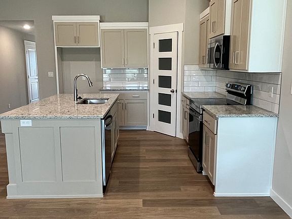 This 3 bed, 2 bath duplex features a 2 car tandem garage with extra storage at the rear. Wood look flooring throughout. Kitchen has an island and a large pantry. The primary bedroom has an attached bathroom with a walk in closet accessible from inside the bathroom.