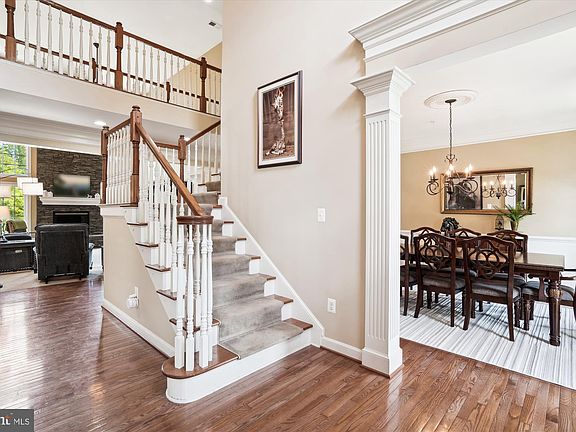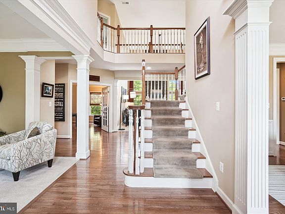 Absolutely stunning classic colonial with open floor plan and expansive rooms is sure to "Wow" you from the moment you step in to the sun-drenched two story foyer. Large family room with welcoming gas fireplace features soaring ceilings, hardwood floors on most of main level and French doors to library/office. Tremendous kitchen with island plus breakfast room and exit to large maintenance -minimal deck overlooking beautifully treed & private setting. Featuring 9' + ceilings, extensive custom molding & trim, double staircase to upper level with open walkway overlooking foyer and family room. Upper level boasts a private primary suite with luxury bath retreat, 3 additional generously sized bedrooms and two additional full baths. Full basement is beautifully finished to allow for large recreation area or potential of additional bedroom space with multiple full sized windows and French door level walk out to patio and full bath. Large area with great workshop storage room and utility area. Featuring 5,716 square feet this home shows beautifully and is in excellent condition. Community center and pool nearby. Ideally located within easy distance of major commuter routes, University of MD, Baltimore, DC, hospitals, shopping and so much more. Many recent updates include HVAC & hot water heater. No Saturday showings please.