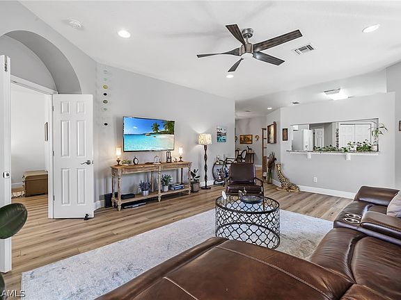 Come see this gorgeous Villa in the very desirable community of Reflection Lakes! The home has 3 bedrooms, 2 baths, 2 car garage, and a huge screened lanai. When you enter you will see the the living room & kitchen and a large sliding glass door flowing to the lanai. The kitchen is big enough to eat in, but you also have a dining room, and of course al fresco on the screened lanai! The home has had so many updates, including new luxury vinyl plank floors through the whole home, and the main bathroom is your dream spa! There is a brand new designer tiled shower, and a free-standing soaking tub, as well as double vanity. There is a large laundry room and extended 2 car garage. The home is high and dry! There were a couple of minor repairs from Hurricane that have been repaired already. Reflection Lakes is a gated community in the center of Ft. Myers. It has a low HOA - which includes WiFi, cable, landscaping, and all the amenities including 2 pools, clubhouses, tennis/pickleball, and more! See attached for all updates. It has all the charm and privacy of a single family home, with ease of maintenance for you.