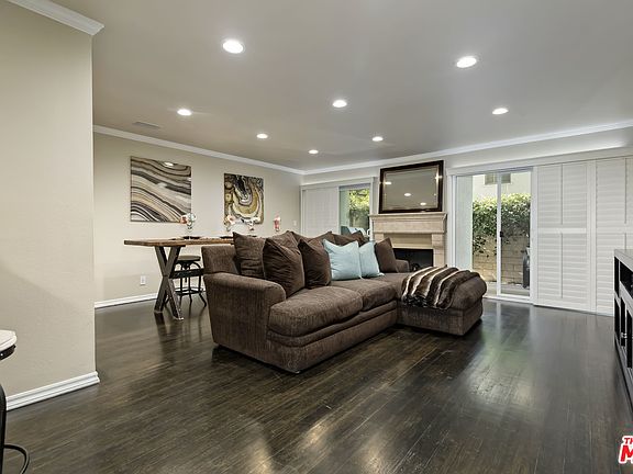 Sophisticated Single Level Condo on treelined street, walking distance to shops, restaurants, markets, and easy access to freeways and the Westside. Well maintained unit that includes an updated kitchen with granite counters, glass front upper cabinets & SS appliances. Bamboo Floors, Crown Molding, Plantation Shutters & Recessed Lighting throughout. Fireplace and Bar along with a Large Private Patio for Entertaining. Washer & Dryer, Refrigerator & BBQ included. Side X Side parking in gated garage with Extra Storage. Community Pool and Spa. HOA fee includes EQ, Water & Gas.
