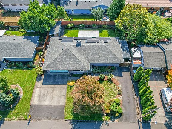 Classic 1958 Mid-Century in the sought after Glendoveer neighborhood. The main floor offers original hardwood floors throughout. A spacious living room is centered around the large picture windows, period fireplace and mahogany paneled feature wall. The adjoining formal dining room provides access to the expansive covered deck and private patio space, perfect for outdoor entertaining. An updated eat-in kitchen offers stainless steel appliances, granite, solid wood cabinets, and a cozy breakfast nook. The bedroom wing provides three bedrooms and two full baths, including the primary suite with a walk-in shower. The half bath and separate laundry room with additional storage completed the main floor. The lower level provides space for a large family/bonus room with a second fireplace, storage and a separate private office area. The home is situated on a beautifully landscaped 0.20 acre fenced lot with a second driveway and covered RV parking. The back yard also offers a studio sized outbuilding with power. Just a short walk to the Glendoveer Golf Course's walking trails and onsite restaurant. Mechanical updates include newer heat pump and mini-split HVAC system, PEX plumbing, solar attic fan, newer windows and a new solar power system. [Home Energy Score = 7. HES Report at https://rpt.greenbuildingregistry.com/hes/OR10041592]