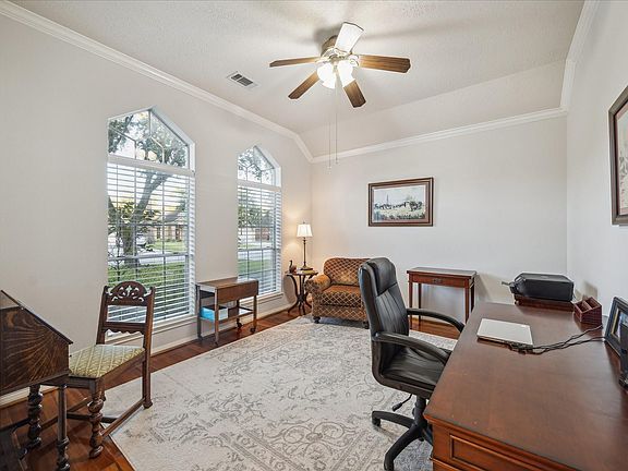Gas log fireplaceHigh ceilingsSplit planOff-set tilePrivate studyLarge eat in kitchenBreakfast bar