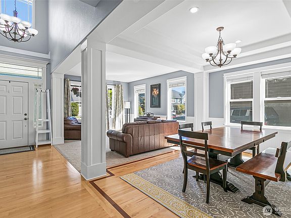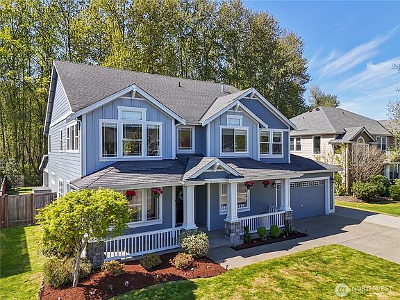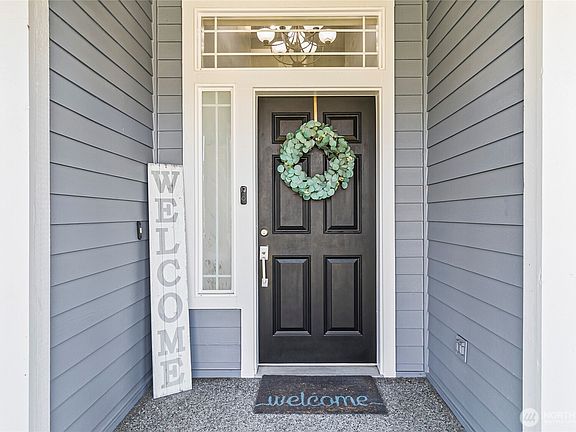 Stunning, Former Model Home at Cedars Bend features 3,521sf of Luxurious Living. Situated just steps from a meandering section of the Puyallup River, this home sits at the back of a gated Community in Sumner SD! Take in the 20' soaring ceiling over head and custom hardwoods with oversized trim at your feet. Enjoy a traditional layout with a formal sitting room (or timeout room) and dining room in off the foyer, a BEAUTIFULLY updated kitchen w/ sleek finishes, slab quartz, oversized island with seating for 6+ to gather around. Step out onto your oversized, covered patio or enjoy campfires under the stars in the back yard. Upstairs, you'll experience a primary suite right out of HGTV, 3 add'l bedrooms, utility room, and a fun movie room!