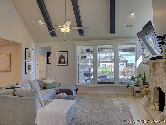 Beautiful home in a gated neighborhood on a corner lot....home was built by Executive homes, its transitional style, 1909 plan. Home is stunning with beautiful wood floors and stacked stone fireplace in the living and into the kitchen. Kitchen is open to living, has custom cabinets, granite and a large bar. Split floor plan, master bedroom has a nice en suite bath with walk in shower and nice sized master closet. Yard is fenced, safe room is negotiable, spray foam insulation and 95% efficient furnace and hvac. Neighborhood offers a lot of amenities such as park, pool, clubroom and trails.