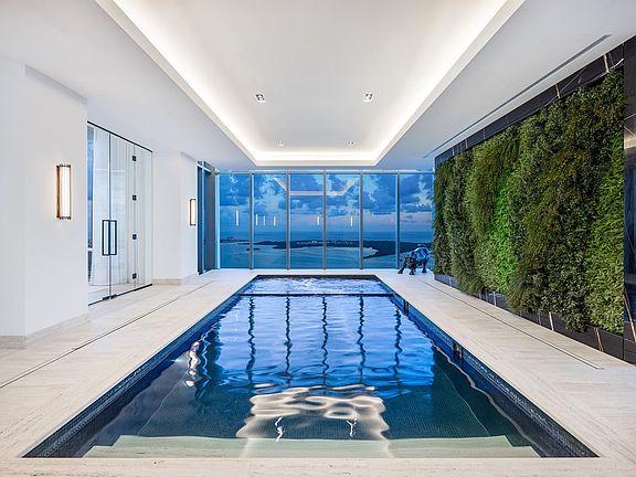 Step Inside With Me! The Pinnacle of Penthouse Living! ECHO PH1 is a statement of ultra lux innovation featuring 11,000SF of sophisticated interiors + indoor Sky Pool. Its luminous design is expressed through 28ft Heights, 360° views, a signature staircase, & a gorgeous green wall. Naturalized by the Earths finest elements of marble, glass & wood, the Poliform kitchen & custom marble baths are on another level. The grand primary suite extends into dual baths, designer closets & midnight bar. W/ 6 parking spaces, 5 bedrooms, 4 elevators, 3 lounges, 2 levels, and 1 incredible aquatic center, the ultimate home is completed w/ an office, staff quarters, BBQ, & full wellness package: fitness studio, cardio room, sauna. Live in the heart of the financial district in the hottest city in America.