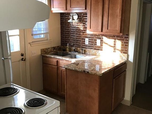Recently redone with sweet kitchen (granite counter), two bedrooms, one bath (with tile surround), A/C, Washer/Dryer, non-working fireplace, fenced side/backyard and off-street parking for two cars. No Pets please. Tenant pays utilities and maintains premises.