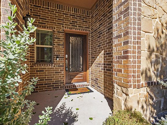 Situated on a .26-acre corner lot, the property features lush landscaping and an expansive covered patio, ideal for relaxing or hosting outdoor gatherings. A custom-built storm shelter is discreetly integrated into the patio, offering peace of mind during storm season.