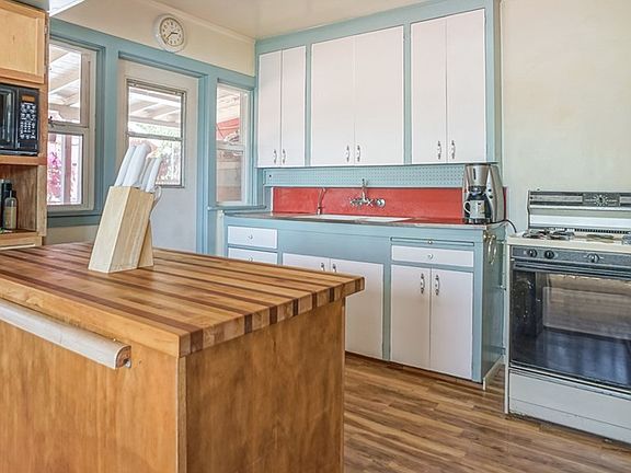 Charming single story home in desirable Eagle Rock! This property is located on a hill and offers incredible views. The living room is spacious with newer windows. The dining room and kitchen are open concept with laminate wood flooring, and more newer windows for those beautiful views and plenty of natural light. The kitchen includes a custom butcher block island and direct access to the patio and laundry area. There is an office (3rd bedroom option) off of the kitchen as well. The hallway leads to the bathroom and 2 additional bedrooms, including expansive master with sitting area. Outside you will find a quaint patio with lovely flowering bougainvillea and the 2-car detached garage. Home is located on a cul de sac in the trendy community of Eagle Rock, close to shopping, transportation and restaurants.