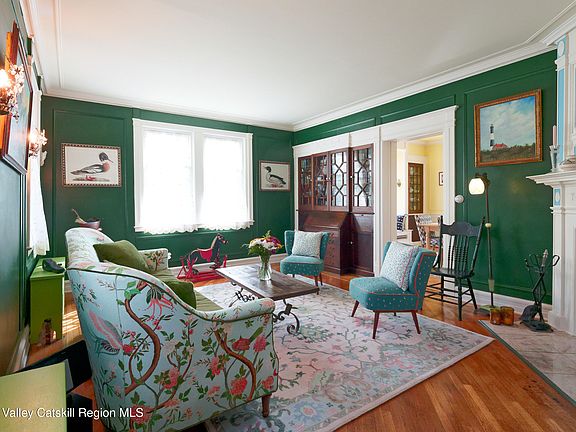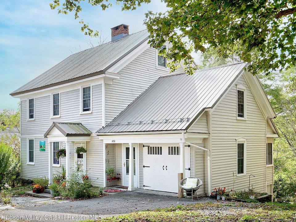 This charming village house is ideally set in picturesque Rensselaerville, high in the Helderberg Hills where summers are cooler and winters are always white with new fallen snow. Walk the many hiking trails surrounding the village, swim in the town lake, and experience an uncomplicated lifestyle not easily found in today's rushed world. The house is updated for modern living and comfortable whether for weekends or full time. A wood-burning corner fireplace graces the living room which leads into the formal dining room overlooking the side and rear gardens. The kitchen is small but perfectly designed. Upstairs are three bedrooms and two full baths as well as a large den that could be a fourth bedroom if need be. Note one of the three bedrooms and one of the two full bathrooms are on the third floor. The attached garage is currently used as a work space or exercise room. The stone walled basement is clean and dry and has windows and an exit door on south side. The tiny village of Rensselaerville is unique not only for its historic architecture placing it on the National Register but also because it has its own municipal water and sewer systems. Three hours from NYC and forty-five minutes from The Hudson Amtrak Station.