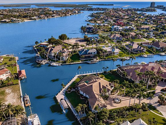 At last ... a rare find ... the luxury waterfront estate home of your dreams! Located on a trophy lot - one of only 8 tip lots on all of Marco Island with Southern rear exposure, over 300' of waterfront on at least 0.7 ac - in the prestigious Estates of Southern Marco Island with breathtaking unobstructed water views all the way to Roberts Bay from just about every room in this custom-built, meticulously-maintained home. With 307' of wrap-around seawall and dock on an extra-large water direct (no bridges) and just minutes to the Gulf of Mexico, deep-water access at the end of a peaceful cul-de-sac. Dock can accommodate a 100' boat, a 40' boat, and a jet ski and still provide unobstructed big water views to Roberts Bay.