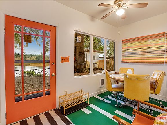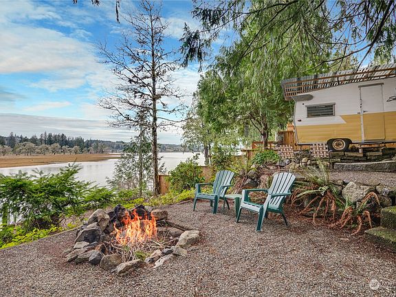 Waterfront under $400K in Oakland Bay. Meet Marigold, a reimagined 1970s beach cabin. This retro retreat updates include: fresh paint (interior/exterior), new carpet & flooring, revamped kitchen & bath w/tiled shower, & vintage-inspired sink. Bonus: Her sister trailer, Buttercup, is negotiable! Enjoy 1 bed + upstairs living w/ fold-out queen bed, perfect for hosting/relaxing. No details were spared—funky outlet covers add to the unique vibe. This peaceful beachfront features a concrete bulkhead & stunning surroundings—watch eagles soar, seals play, & enjoy oysters, clams, & salmon runs. Float in w/ the tide from the point! Power/water run through the property to the beach. A one-of-a-kind gem—I dare you not to smile when you see this place!