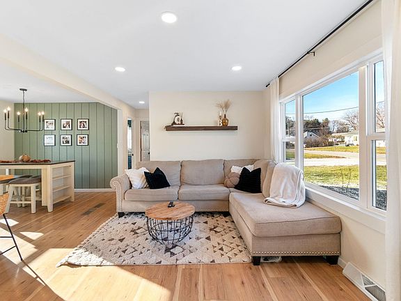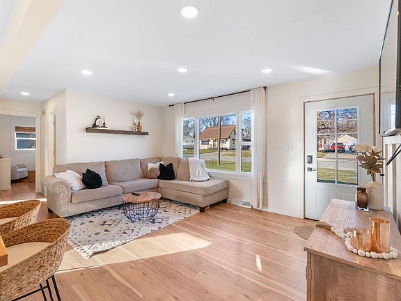 Welcome home! Situated in a top-notch Waterloo location just minutes away from schools, shopping, and more, this charming ranch home has been completely remodeled and updated from top to bottom! As soon as you step through the front door, you're sure to fall in love with the open-concept floor plan that provides an enhanced sense of space, making each room feel larger and entertaining guests easy! The living room is spacious and bright, with modern styling that features a board and batten accent wall and beautiful LVT flooring that flows seamlessly throughout the main floor. Open to the living room is the remodeled kitchen, equipped with all-new white cabinetry, hard surface countertops, a vertical glass tile backsplash, brass hardware, stainless steel appliances, and a gorgeous center island with a butcher block countertop and breakfast bar seating. Flanked by the kitchen is a tremendous dining space, offering enough room for a full-size table and tasteful design choices with its painted green cedar accent wall and candlestick chandelier lighting. Completing the main floor are two good-sized bedrooms and a remodeled full bathroom. Head downstairs to find a lower level that's prepped with new wiring and sheetrock and is ready for future finish. This terrific space is already complete with a second full bathroom and provides the ideal setup for a family room and a third bedroom. A laundry room and ample storage conclude the lower level. Outside, you'll love the curb appeal from the fresh landscaping, while the concrete patio and fenced-in yard provide the perfect spot to relax and enjoy the outdoors. That's not all—enjoy the space and convenience of the oversized detached two-stall garage, giving you plenty of storage for your toys and vehicles. The update list includes- new siding and gutters, all new windows, a complete kitchen and main floor bath remodel, an added full bath in the basement, all new plumbing lines throughout the home, an added sub panel/new electrical, interior/exterior lighting, interior/exterior doors, new flooring and trim throughout, and much more! A property like this doesn't come around often! Schedule your private showing and make this turnkey home yours today!