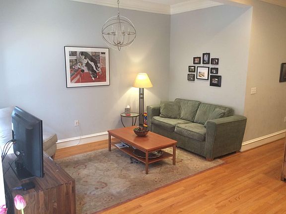 $3500/month for the apartment. In addition, option to lease one Garage Parking space, owned by apt. owners, directly across the street from the apartment building for $250/month. Available starting August 20, 2021 or thereafter. NOTE: Please email me if you'd like to schedule a viewing. Large and sunny 2 BR / 2 full bath in a gorgeous Victorian townhouse built in 1905 and completely renovated. Amazing location on quiet and tree-lined N Street, steps from the bustling 14th Street Corridor and close to Dupont Circle. Apartment features bay window with original stained glass transom, 11' high ceilings, stylish decor, open living and dining room with a gas fireplace, and beautiful oak hardwood floors throughout. Gourmet kitchen with top-of-the-line stainless steel appliances, microwave, garbage disposal, rich cherry cabinets, black granite countertops, and recessed lighting. Luxurious Master Bedroom has a spa-like white marble private bathroom featuring a Kohler dual-head shower. * Full second floor of a renovated historic townhouse. * Washer and dryer in apartment. * Central Air Conditioning. * Separately metered heating. * Wired for Comcast and RCN. * Excellent closet space. * 1,100 square feet total. Walking distance to everything -- two blocks from Whole Foods, short walk to downtown and the shops and restaurants of Logan Circle and Dupont Circle. Short walk to McPherson Square (orange/blue lines) and Dupont Circle (red line). Rent includes water and trash removal. All other utilities are separate. Minimum one-year lease. One-month's security deposit due at signing. No smoking. Pets considered on a case by case basis. Tenant responsible for gas and electric.