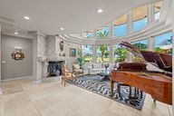 Travertine pool deckNew roofSweeping golf course viewsCustom etched-glass entryImpact windows and doors